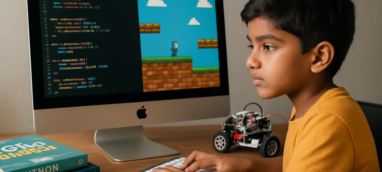 All our programs and courses are designed for children aged 6-16 years, with structured learning paths tailored to their age and skill level. We recommend at least two sessions (1 hour each) per week for the best learning experience for this age group.